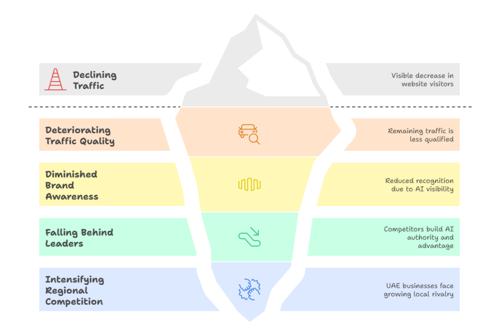 The businesses that recognize this shift now and adapt their digital presence accordingly will capture disproportionate market share over the next two years. Those that wait will find themselves competing for a shrinking pool of traditional search traffic while watching competitors dominate AI-driven discovery. This article explains exactly what’s changing, why it matters specifically for UAE businesses, and what you need to do about it.